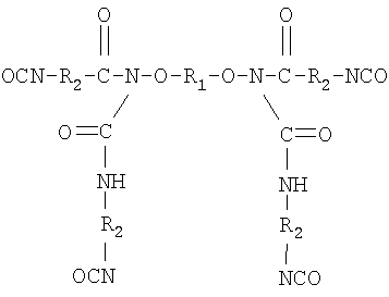 Технический результат достигается за счет того, что в отличие от известной композиции предлагаемая композиция содержит изоцианатный форполимер, полученный взаимодействием гидроксилсодержащего олигобутадиенового каучука с большим избытком 4,4′-дифенилметандиизоцианата. Олигобутадиеновый гидроксилсодержащий каучук отличается высокой степенью функциональности, практически равной двум, узким молекулярно-массовым распределением и совершенным распределением по типу функциональности. Доля бифункциональных макромолекул достигает 92%, при содержании бесфункциональных молекул не более 2%. Гидроксилсодержащий олигобутадиеновый каучук является продуктом анионной полимеризации, имеет линейную структуру, среднечисленная молекулярная масса 2800-3200, содержание концевых гидроксильных групп 0,9-1,3%. Микроструктура каучука: 1,4-цис 10-18%, 1,4-транс 18-28%, 1,2-звеньев 58-70%. Химическая структура где R-H, CH3. Изоцианатный форполимер, полученный взаимодействием указанного олигобутадиендиола с избытком 4,4′-дифенилметандиизоцианата, содержит 8,0-9,7% изоцианатных групп. Полученный форполимер также отличается совершенным распределением макромолекул по типу функциональности. Использование 4,4′-дифенилметандиизоционата при соотношении функциональных групп NCO_OH=4:1 при получении форполимера обеспечивает повышение функциональности за счет взаимодействия уретановых и изоцианатных групп, создавая дополнительные центры сшивания с поперечными связями регулярной структуры. Структура форполимера имеет следующий вид: