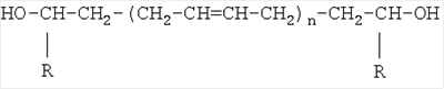 где R1 – олигобутадиеновый блок; R2 – фрагмент 4,4′-дифенилметандиизоцианата. Такая структура форполимера, функциональность и распределение функциональных групп при использовании для отверждения ароматических диаминов диамет X или этакюра приводит к образованию микрогетерогенной сетки с чередующимися гибкими олигобутадиеновыми блоками и жесткими мочевино-уретановыми блоками. Присутствие в структуре отвержденного продукта микрофаз гибких и жестких блоков определяет особенности его свойств: высокую прочность, твердость в сочетании с эластичностью. Уретано-мочевинные блоки создают непрерывную физическую сетку за счет чрезвычайно сильных межмолекулярных взаимодействий. При этом эластические свойства сохраняются благодаря микроструктуре олигомерного блока с высокой долей (58-70%) 1,2-звеньев. Микроструктура используемого форполимера обеспечивает сохранение аморфного высокоэластического состояния каучука в гибких микроблоках, несмотря на высокую плотность сшивания и регулярность химических вулканизационных связей. Это обеспечивает возможность развития высокоэластической деформации и ориентации цепей в эластических микроблоках. Благодаря этому при отверждении реализуется близкая к идеальной, более плотная и равномерная пространственная сетка сшитого эластомера с незначительной дефектностью и высоким содержанием эластически активных цепей. Прочность повышается за счет более равномерного распределения напряжений при деформировании, а также возможности их перераспределения. Такая сетка физических связей достаточно подвижна, при высоких напряжениях и при локальных перенапряжениях физические связи способны распадаться и образовываться вновь, способствуя тем самым выравниванию напряжений. Полученный технический результат повышения прочности полимерной композиции, включающей изоцианатный форполимер указанной структуры, отверждаемый 3,3′-дихлор-4,4′-диаминодифенилметаном не является очевидным, так как анализ известных решений не дает оснований предполагать, что сочетание указанных компонентов должно приводить к упрочнению предлагаемой композиции. В качестве изоцианатного форполимера используют форполимер с содержанием 8,0-9,7% изоцианатных групп. В качестве отвердителя используют 3,3′-дихлор-4,4′-диаминодифенилметан (диамет X, ТУ-6-14-980-84, МОСА, Куралон) или смесь 3,5-диметилтио-2,4-толуилендиамина и 3,5-диметилтио-2,6-толуилендиамина в соотношении 80:20 (этакюр 300). Форполимер получают по следующей методике: навеску 200 г олигобутадиенового каучука Красол LBH 3000 с содержанием 1,1% гидроксильных групп помещают в колбу, нагревают до 80°С при перемешивании, выдерживают при этой температуре под вакуумом при остаточном давлении не выше 10 мм рт.ст. 60 минут, вводят 64,8 г 4,4′-дифенилметандиизоцианата и выдерживают при 80°С при перемешивании в течение 2 часов. Полученный форполимер сливают, охлаждают. Расчет необходимого количества 4,4′-дифенилметандиизоцианата ведут по формуле, в г на 100 г каучука: М=(42*А*100*4)/(17*33,6), где М – навеска диизоцианата; А – содержание гидроксильных групп в каучуке. Для приготовления композиции нагретый до температуры 50-60°С форполимер смешивают с расплавом 3,3′-дихлор-4,4′-диаминодифенилметана в течение 1-2 минут. Соотношение NCO-групп и NH2-групп компонентов варьируется от 0,5 до 1,2. Приготовленную компози