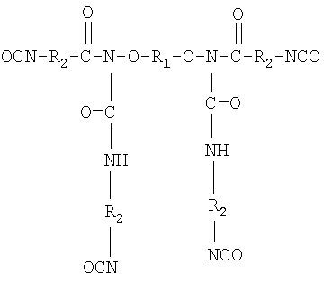 Технический результат достигается за счет того, что в отличие от известной композиции предлагаемая композиция содержит изоцианатный форполимер, полученный взаимодействием гидроксилсодержащего олигобутадиенового каучука с большим избытком 4,4′-дифенилметандиизоцианата. Олигобутадиеновый гидроксилсодержащий каучук отличается высокой степенью функциональности, практически равной двум, узким молекулярно-массовым распределением и совершенным распределением по типу функциональности. Доля бифункциональных макромолекул достигает 92% при содержании бесфункциональных молекул не более 2%. Гидроксилсодержащий олигобутадиеновый каучук является продуктом анионной полимеризации, имеет линейную структуру, среднечисленную молекулярную массу 2800-3200, содержание концевых гидроксильных групп 0,9-1,3%. Микроструктура каучука: 1,4-цис 10-18%, 1,4-транс 18-28%, 1,2-звеньев 58-70%. Химическая структура где R-H; CH3. Изоцианатный форполимер, полученный взаимодействием указанного олигобутадиендиола с избытком 4,4′-дифенилметандиизоцианата, содержит 8,0-9,7% изоцианатных групп. Полученный форполимер также отличается совершенным распределением макромолекул по типу функциональности. Использование 4,4′-дифенилметандиизоционата при соотношении функциональных групп NCO_OH=4:1 при получении форполимера обеспечивает повышение функциональности за счет взаимодействия уретановых и изоцианатных групп, создавая дополнительные центры сшивания с поперечными связями регулярной структуры. Структура форполимера имеет следующий вид: