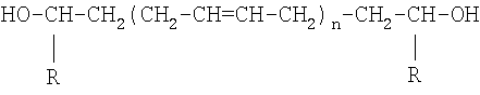 где R1 – олигобутадиеновый блок; R2 – фрагмент 4,4’дифенилметандиизоцианата. Такая структура форполимера, функциональность и распределение функциональных групп при использовании для отверждения глицерина, триметилолпропана или этоксилированного глицерина и дибутилдилаурината олова, приводит к образованию микрогетерогенной сетки с чередующимися гибкими олигобутадиеновыми блоками и жесткими уретановыми блоками. Присутствие в структуре отвержденного продукта микрофаз гибких и жестких блоков определяет особенности его свойств: высокую прочность, твердость в сочетании с эластичностью. Уретановые блоки создают непрерывную физическую сетку за счет сильных межмолекулярных взаимодействий. При этом эластические свойства сохраняются благодаря микроструктуре олигомерного блока с высокой долей (58-70%) 1,2-звеньев. Микроструктура используемого форполимера обеспечивает сохранение аморфного высокоэластического состояния каучука в гибких микроблоках, несмотря на высокую плотность сшивания и регулярность химических вулканизационных связей. Это обеспечивает возможность развития высокоэластической деформации и ориентации цепей в эластических микроблоках. Благодаря этому при отверждении реализуется близкая к идеальной, более плотная и равномерная пространственная сетка сшитого эластомера с незначительной дефектностью и высоким содержанием эластически активных цепей. Прочность повышается за счет более равномерного распределения напряжений при деформировании, а также возможности их перераспределения, так как такая сетка физических связей достаточно подвижна при высоких напряжениях, и при локальных перенапряжениях физические связи способны распадаться и образовываться вновь. Полученный технический результат повышения прочности полимерной композиции, включающей изоцианатный форполимер указанной структуры, отверждаемый этоксилированным глицерином или глицерином, или триметилолпропаном и дибутилдилауринатом олова не является очевидным, так как анализ известных решений не дает оснований предполагать, что сочетание указанных компонентов должно приводить к упрочнению предлагаемой композиции. В качестве изоцианатного форполимера используют форполимер с содержанием 8,0-9,7% изоцианатных групп. В качестве отвердителей используют глицерин; триметилолпропан; этоксилированный глицерин (лапрол 373 – ТУ2226-024-1048857-95, продукт конденсации глицерина и окиси пропилена) и дибутилдилауринат олова. Форполимер получают по следующей методике: навеску 200 г олигобутадиенового каучука Красол LBH 3000 с содержанием 1,1% гидроксильных групп помещают в колбу, нагревают до 80°С при перемешивании, выдерживают при этой температуре под вакуумом при остаточном давлении не выше 10 мм рт.ст. 60 минут, вводят 64,8 г 4,4′-дифенилметандиизоцианата и выдерживают при 80°С при перемешивании в течение 2 часов. Полученный форполимер сливают, охлаждают и определяют содержание NCO-групп. Расчет необходимого количества 4,4′-дифенилметандиизоцианата ведут по формуле, в г на 100 г каучука: М=(42*А*100*4)/(17*33,6), где М – навеска дииизоцианата; А – содержание гидроксильных групп в каучуке. Для приготовления композиции используют смесительное оборудование, обеспечивающее гомогенизацию отвердителя в форполимере. Осуществимость изобретения иллюстрируется следующими п