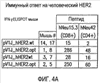 Согласно настоящему изобретению последовательность гена человеческого HER2 и последовательность гена человеческого HER2ECDTM были преобразованы в полинуклеотидные последовательности, имеющие идентичные транслируемые последовательности в сравнении с эквивалентами дикого типа, но с альтернативным применением кодона, как описано у Lathe Synthetic Oligonucleotide Probes Deduced from Amino Acid Sequence Data: Theoretical and Practical Considerations J. Molec. Biol. 183:1-12 (1985), которая включена в настоящее описание во всей своей полноте в качестве ссылки. Методология в общем случае состоит из идентификации кодонов в последовательности дикого типа, которая обычно не ассоциируется с высокоэкспрессируемыми человеческими генами, и замены их оптимальными кодонами для высокой экспрессии в человеческих клетках. Указанные оптимальные кодоны называются в настоящем описании кодонами предпочтительными для человека . Затем новую генную последовательность тестируют на нежелательные последовательности, генерируемые заменами кодонов (например, последовательности АТТТА , случайное образование сайтов узнавания сплайсинга интрона, нежелательные сайты рестрикционных ферментов, высокое содержание GC и т.д.). Нежелательные последовательности удаляют путем замены существующих кодонов другими кодонами, кодирующими такую же аминокислоту. Затем синтетические сегменты гена тестируют на улучшенную экспрессию.