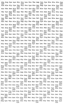Значение явления предпочтения кодона обнаружено при помощи методов рекомбинантной ДНК, и это явление может служить объяснением многих ранних неудач в достижении высоких уровней экспрессии экзогенных генов в успешно трансформированных организмах хозяев – менее предпочтительный кодон может быть неоднократно представлен в интересующем гене, и механизм клетки хозяина, реализующий экспрессию, может не работать также эффективно. Это явление предполагает, что синтетические гены, которые разработаны таким образом, что они включают кодоны, предпочтительные для предполагаемой клетки хозяина, обеспечивают оптимальную форму чужеродного генетического материала для применения методов рекомбинантных ДНК. Таким образом, одним из аспектов настоящего изобретения является ген человеческого HER2, который является кодон-оптимизированным для экспрессии высокого уровня в человеческой клетке. В предпочтительном варианте осуществления настоящего изобретения было обнаружено, что использование альтернативных кодонов, кодирующих такую же белковую последовательность, может устранить ограничения на экспрессию экзогенного белка hHER2 в человеческих клетках. Другим аспектом настоящего изобретения является укороченный ген человеческого HER2, hHER2ECDTM, который является кодон-оптимизированным для экспрессии высокого уровня в человеческой клетке хозяина, причем указанный укороченный ген HER2 содержит нуклеотидные последовательности, которые кодируют внеклеточный и трансмембранный домены человеческого HER2.