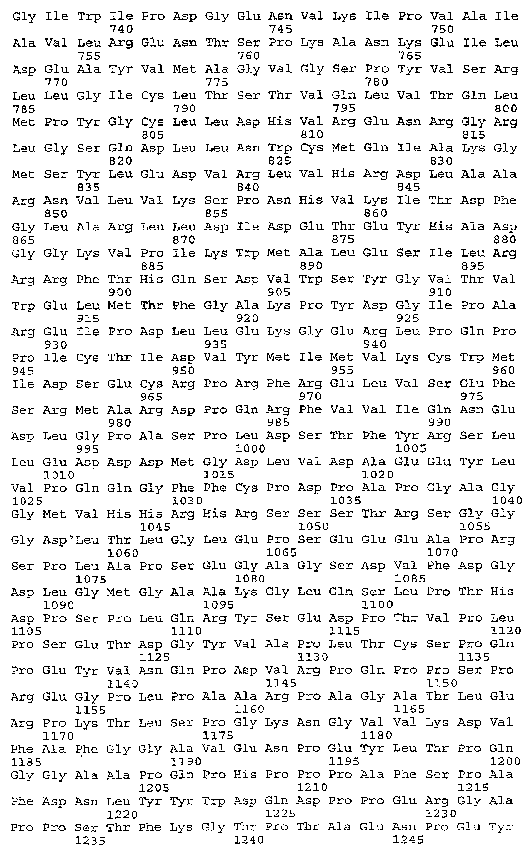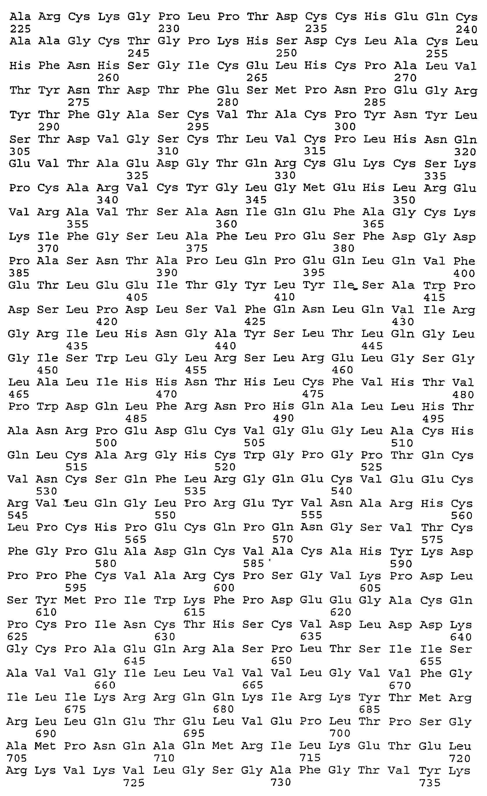pV1J-hHER2.wt: последовательность, кодирующую человеческий HER2 дикого типа, амплифицировали при помощи ПЦР из плазмиды pLTR-2/erb-B2 (любезно предоставленную P.Di Fiore, European Institute of Oncology, Milan, Italy; Di Fiore et al., Science 237 (4811):178-82 (1987)) с использованием праймеров hNeu.for1 (5′-CCAGTTTAAACATTTAAATGCCGCCACCATGGAGCTGGCGGCCT-3′: (кодирующая SEQ ID NO:3 последовательность подчеркнута)) и hNeu.rev2 (5′-GCCGTCGACTTTACACTGGCACGTCCAGACCCA-3′: (SEQ ID NO:4)) и TaKaRa LA Taq полимеразы (TaKaRa Otsu, Shiga, Japan). Продукт амплификации, который включает оптимизированный сайт начала трансляции (Kozak, M., J Mol Biol 196(4):947-50 (1987); Kozak, M., Nucleic Acid Res 15(20):8125-48(1987)), гидролизовали рестрикционными ферментами PmeI и SalI и клонировали в сайты EcoRV и SalI плазмиды экспрессии pV1JnsA для млекопитающих (см. Montgomery et al., DNA Cell Biol 12(9):777-83 (1993)). Таким образом сгенерированная плазмида pV1J-hHER2 содержала последовательность человеческого белка HER2 дикого типа полной длины, транскрипция которой управлялась ранним промотором цитомегаловируса человека с его интронной А последовательностью. Последовательность, кодирующая человеческий HER2 дикого типа полной длины, за которой следовала сигнальная последовательность полиаденилирования гормона роста крупного рогатого скота.