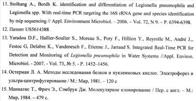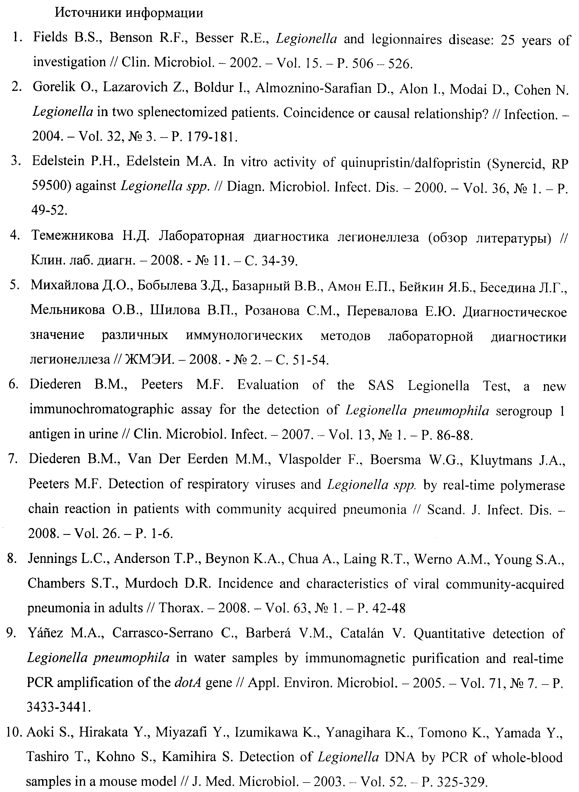 2, 2008, с.29-37. ТЕМЕЖНИКОВА Н.Д. Лабораторная диагностика легионеллеза (обзор литературы). Клин. лаб. диагн. 11, 2008, с.34-39.