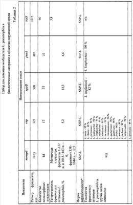 Для характеристики специфичности ПЦР применяли выборку штаммов из целевой коллекции различных микроорганизмов. Специфичность ПЦР с праймерами на основе нуклеотидной последовательности ftsZ гена представлена в табл.3.