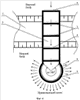 Кроме того, как вариант, вплывное отверстие 7 во входной разделительной стенке 5 входного оголовка рыбохода (фиг.9) выполняют в форме, представляющей собой в проекции на плоскость 12, ортогональную вектору 13, проходящему через точку пересечения диаметров 17 вплывного отверстия 7 и перпендикулярному к этим диаметрам 17, а также перпендикулярному к оси 15 цилиндрической поверхности входной разделительной стенки 5 рыбохода, фигуру 18 в виде окружности.