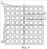 Известна прямоугольная железобетонная плита, в которой нижняя поверхность в каждой своей половине, симметричной относительно поперечной оси симметрии плиты, образована двумя одинаковыми малыми ячейками и несколькими одинаковыми большими ячейками, расположенными симметрично относительно продольной оси симметрии плиты, причем каждая малая ячейка расположена у каждого продольного края плиты, большие ячейки расположены между ними, а большие стороны ячеек параллельны продольной оси симметрии плиты (Заявка 94017142, дата приоритета 24.05.1994, дата публикации 20.02.1996, авторы: Демин Б.И. и др., RU).