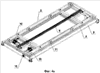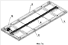 Известно также «Устройство для передвижения поддона» (патент Японии 3403034 В2, 11131856 А, класс 7 Е04Н 6/30), в котором устройство имеет коробчатую форму для горизонтальной циркуляции, поддон перемещается в устройстве от неподвижной направляющей к подвижной, при этом направляющая крепится к тележке, и поддон вместе с тележкой движутся по уклону тянущим и толкающим усилием привода. При движении поддон входит в неподвижный, отдельно установленный ролик, направление движения поддона изменяется на горизонтальное, а тележка продолжает двигаться по уклону для отделения от поддона. Конструкции платформы для приема автомобилей и устройства для передвижения поддона могут быть применены только для определенного вида парковочных сооружений и не могут быть использованы для автоматизированной системы открытой или закрытой парковки автомобилей при одноуровневом горизонтальном размещении автомобилей, с максимальной плотностью использования парковочной площади.