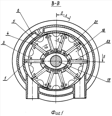 Сущность изобретения поясняется чертежами, где на фиг.1 – изображен поперечный разрез В-В двигателя на фиг.2 и радиальные уплотнения;
