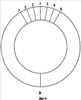 Расстанавливаются сопловые лопатки. В качестве критерия выбора взяли fкор – площадь между корытом лопатки и плоскостью радиального клина. Площадь fкор эталон равна 3,53 см2. На каждой лопатке, предназначенной для установки в корпус и имеющей индивидуальный номер, измеряют площади fкор i. Данные измерений сведены в таблице 1. Сортируют лопатки по убыванию площадей fкорi. Данные приведены в таблице 2. Располагают лопатки в ряд (столбец 3 таблицы 2, фиг.3). Первой в корпус устанавливают лопатку с максимальным значением fкор i. Каждую следующую лопатку из ряда размещают в корпусе рядом с ранее установленными лопатками с изменением направления обхода. На фиг.4 лопатки с четными номерами из ряда располагаются по направлению часовой стрелки, а лопатки с нечетными номерами располагаются против часовой стрелки. Если лопатку с номером два из ряда разместить с другой стороны первой лопатки, то направление обхода будет противоположным.