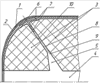 Боковая поверхность n-гранной усеченной пирамиды позволяет аппроксимировать тело вращения набором n плоских граней. После изготовления и полимеризации заряда 3 и извлечения иглы формирующие щель 5 элементы оснастки удаляются из нее через канал 4. Элементы оснастки могут быть, например, плоскими, позволяющими существенно упростить процесс их извлечения из тела заряда после его изготовления, или округлыми, которые предпочтительно использовать при реализации щели 5 методом разрезки для размещения внутри полых стержней оснастки режущей струны, или любой другой приемлемой, с технологической точки зрения, формы их поперечного сечения. Каналы 10 ввиду незначительности их размеров не оказывают практического влияния на изменение схемы выгорания заряда 3.