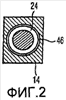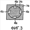 Альтернативно, может использоваться другое внутреннее поперечное сечение, например, внутренне квадратное поперечное сечение. Схематичный вид поперечного сечения альтернативного варианта с корпусом 14а насосной секции, имеющей круговое поперечное сечение насосной камеры, показан на фиг.3. Цилиндрический профилированный подвижный элемент 24а имеет один или несколько каналов 46а, имеющих результатом один или несколько путей потока между подвижным элементом 24а и корпусом 14а насосной секции, как показано на фиг.3. Хотя на фиг.3 показаны четыре канала 46а, в альтернативных вариантах может быть различное число каналов, например только один канал.