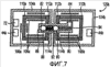 Как можно видеть на фиг.7, катушки привода 106а и 108а намотаны вокруг ферромагнитного ярма 110а, а катушки 106b привода намотаны вокруг ферромагнитного ярма 110b. Полюсные наконечники 112а и 114а присоединены к ферромагнитному ярму 110а, которое проводит магнитный поток так, что шарик 99 в рабочем режиме протягивается между полюсными наконечниками 112а и 112b. Также, полюсные наконечники 112b и 114b присоединены к ярму 110b, которое проводит магнитный поток так, что шарик 90 протягивается в рабочем режиме между полюсными наконечниками 112b и 114b.
