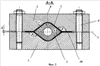 На фиг.1 показана схема присоединения пластикового пакета к трубопроводу; на фиг.2 – то же, разрез А-А на фиг.1.