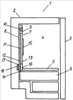 Установочная плита 9 располагается на задней стенке 7 внутреннего отсека 8 охлаждающего отсека 2 в виде вертикальной разделяющей стенки, на которой предварительно установлены различные электрические и технические узлы холодильника 1. В рассматриваемом варианте осуществления изобретения имеются вентилятор 10, испаритель 11, датчик 12 испарителя, установленный на поверхности испарителя 11, температурный датчик 13 охлаждаемого пространства, температурный датчик 14 отделения хранения, средство 15 освещения охлаждаемого пространства, а также, необязательно, средство освещения отделения хранения.