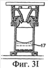 На фиг.3I с полками 40, 50 в той же конфигурации, что на фиг.3Н, температуру понижают так, что раствор 17 замораживают.