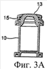 На фиг.3А показан пустой флакон 10 с крышкой 13 и зажимной частью 15, внутренней частью, которая является стерильной в результате стерилизации радиацией или стерильного изготовления.
