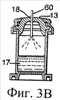 На фиг.3В наполняющую иглу 60 пропускают через крышку 13, создавая проколотое отверстие 18, при этом раствор 17 материала, который надо лиофилизировать, вводят во флакон 10 через иглу 60.