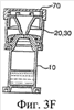 На фиг.3D пенетратор 20, направляющая 30 и мембрана 25 показаны в сборе. На Фиг.3D показана направляющая 30, которая является частью цилиндрического рукава, содержащего верхнюю кольцеобразную раму 32 и нижние упругие ножки 33 защелки.