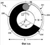 Амплитудный кодер 230 имеет форму диска диаметром D. Кодер 230 содержит отверстие 238 для осуществления соединения с валом (непоказанным). Кодер 230 содержит единственную часть 231, состоящую из 360-градусного углового сектора. Единственная часть 231 содержит первый угловой сектор 234, второй угловой сектор 235 и третий угловой сектор 236. Каждый угловой сектор задан углом 3, равным 120°. Первый угловой сектор выполнен из первого фильтрующего элемента, второй угловой сектор выполнен из второго фильтрующего элемента и третий угловой сектор выполнен из третьего фильтрующего элемента. Первый фильтрующий элемент по существу пропускает 100% падающего пучка. Второй фильтрующий элемент по существу пропускает 50% падающего пучка. Третий фильтрующий элемент по существу блокирует падающий пучок. В данном примере фильтрующие элементы расположены по периферии кодера, имеющей ширину W. Ширина выбрана так, что каждый фильтрующий элемент задает окно, размер которого значительно больше, чем размер единственного пучка SB, когда пучок попадает на периферию.