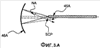 На фиг.3А показана первая конфигурация формирователя пучка/зеркала. Формирователь пучка выполнен в виде усеченного волокна 45А, связанного с вогнутым зеркалом 46А. Обычно падающий пучок, обеспечиваемый усеченным волокном, является расходящимся пучком, имеющим определенную числовую апертуру NA (угол расхождения относительно оптической оси). Чтобы получать хорошую юстировку, предпочтительно располагать кончик оптического волокна в сферическом центре SCP зеркала. Эта конфигурация имеет жесткий допуск на положение кончика волокна, но она нечувствительна к повороту оптического волокна вокруг его кончика.
