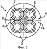 Трубка содержит штангу 1 большой длины, с задней торцевой стороны 2 которой выходят подводящие и отводящие каналы для охлаждающей воды и провод термопары, измеряющей температуру. Как показано на фиг.2, штанга 1 выполнена полой и разделена на две симметричные половины 3. Поверхность разъема двух половин 3 обозначена позицией 4. Каждая из половин 3 в основном заполнена водяным охлаждающим контуром и содержит параллельные подающий и отводящий участки, соединенные между собой водяной камерой 6. Трубки 5 охлаждающего контура соприкасаются между собой и расположены в полых гнездах 7, образованных во внутренней стенке половин 3, и на треугольных клиньях 8, расположенных между трубками. Таким образом, получается компактное и прочное крепление. Провод от термопары 9 проходит между четырьмя трубками вплотную к ним. Штанга 1 выполнена из нержавеющей стали.