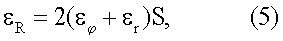 и равенстве их номинальных значений не возникает погрешность от нелинейности измерительной цепи, так как не возникает несимметрия плеч измерительного моста при деформации благодаря равенству окружных и радиальных деформаций в местах установки тензорезисторов. При этом относительные изменения сопротивлений окружных и радиальных тензорезисторов равны.