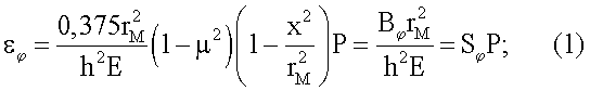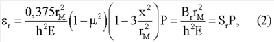 Измеряемое давление действует на мембрану, которая деформируется и на ее поверхности возникают относительные окружные  и радиальные деформации r, определяемые выражениями (1) и (2).