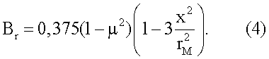 где x – текущая координата радиуса; rM – радиус мембраны; Е – модуль упругости материала мембраны; µ – коэффициент Пуассона; В , Br – конструктивные коэффициенты чувствительности мембраны к давлению для случаев использования окружных и радиальных деформаций; S , Sr – чувствительности мембраны при использовании окружных и радиальных деформаций соответственно.