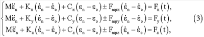 решается относительно демпфирования Кх Кy, Kz, в результате чего определяется зависимость демпфирования от скорости деформации для каждого направления осей координат (4):