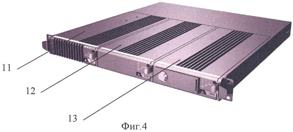 В случае с одним модулем питания 11 и двумя компьютерными модулями 12, 13 (фиг.5) включением и выключением управляет компьютерный модуль 13.