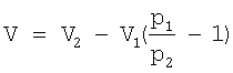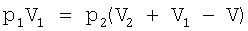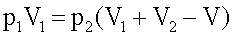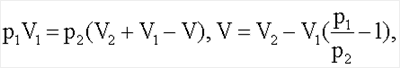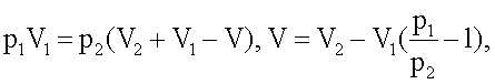 где p1 – избыточное давление в емкости объемом V1; р2 – избыточное давление в системе объемом (V1+V2-V).