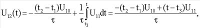 где U10 – напряжение на выходе источника напряжения 10, – постоянная интегрирования интегратора 12.