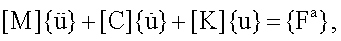 где: [M] – матрица массы; [C] – матрица затухания; [K] – матрица упругости; {u} – узловой вектор перемещения;