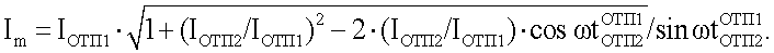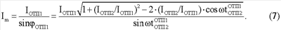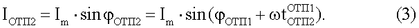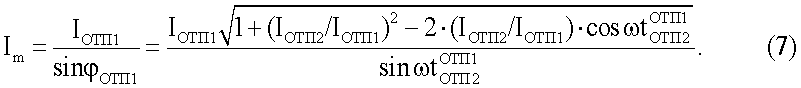 При замыкании контактов герконов 1, 2 с током срабатывания IСР1=IСР2 на выходе элемента И 3 с одним инверсным входом сигнал отсутствует. Размыканием контактов геркона 1 запускается отсчет времени в микропроцессоре 4, так как на его вход поступает сигнал с элемента И 3. Выходной сигнал элемента И 3 обусловлен замкнутым состоянием геркона 2 и разомкнутым состоянием геркона 1. Далее при размыкании контактов геркона 2 отсчет времени останавливается, так как на втором входе элемента И 3 сигнал отсутствует. В микропроцессоре 4 по измеренному значению времени между размыканием контактов герконов 1, 2 согласно (7) рассчитывается амплитуда тока Im и поступает в устройство 5 отображения информации. Равенство токов срабатывания первого, второго герконов IСР1=IСР2 обусловливает отсутствие зоны нечувствительности измерительного органа при IСР1>Im>IСР2. Действительно, если бы первый геркон срабатывал и замыкал контакты при токе IСР1, второй геркон – при токе IСР2, при этом IСР1>IСР2, а амплитуда Im измеряемого тока находилась бы в пределах IСР1>Im>IСР2, измерить величину тока было бы невозможно поскольку первый геркон не сработает, а следовательно, невозможно замерить время между моментами размыкания контактов герконов.