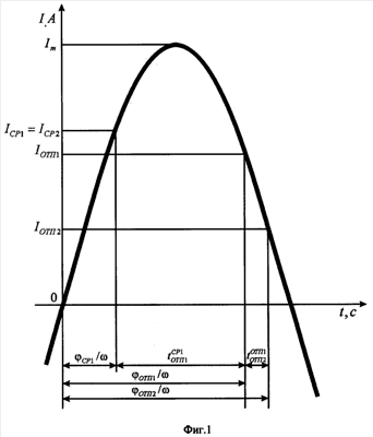 На фиг.1 показан полупериод синусоиды измеряемого тока и величины токов срабатывания и отпадания герконов.