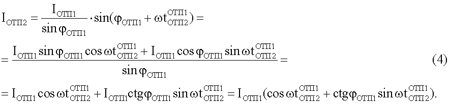 Микропроцессор 4 подключен так, что начинает отсчитывать время при снижении тока в шинопроводе до значения IОТП1, определяемого ОТП1/ и размыканием контактов геркона 1, а останавливается при снижении тока в шинопроводе до значения IОТП2, определяемого ОТП2/ и размыканием контактов геркона 2: