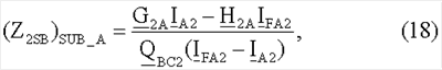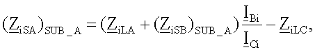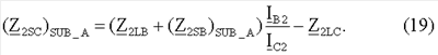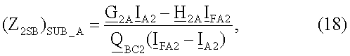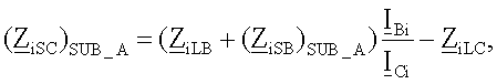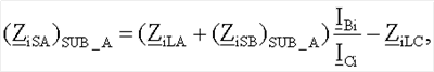 (ZiSB)SUB_A) – обозначает импеданс эквивалентных источников для отрицательной последовательной составляющей и/или для инкрементной положительной последовательной составляющей, вычисляемой в предположении, что повреждение произошло на участке LA линии;