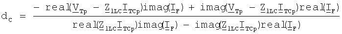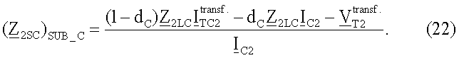 где нижний индекс i принимает значения i=2 для отрицательной последовательной составляющей, i= 1 для инкрементной положительной последовательной составляющей; dc – обозначает расстояние от конца линии передачи с ответвлениями до точки повреждения; ZiLC – обозначает импеданс участка LC линии для отрицательной последовательной составляющей и/или для инкрементной положительной последовательной составляющей, где Z2LC=ZlLC и Z lLC=ZlLC; ZlLC – обозначает импеданс участка LC линии для положительной последовательной составляющей;