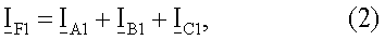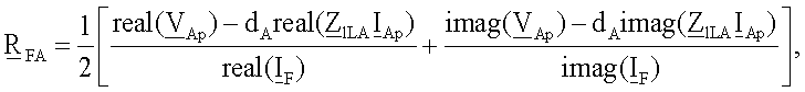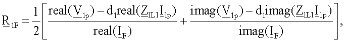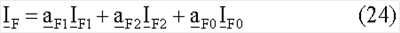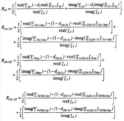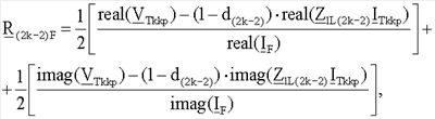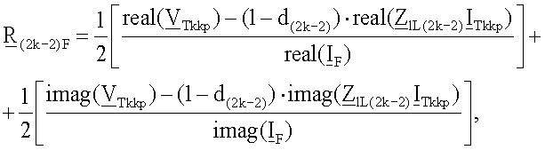 где   – обозначает начальные распределенные коэффициенты, определяющие соотношение между симметричными составляющими полного тока повреждения, когда оценивается падение напряжения на сопротивлении в месте повреждения, bF1, bF2 – обозначает коэффициенты соотношения, определяемые из соотношения между нулевой составляющей и другими составляющими полного тока повреждения, текущего через сопротивление в месте повреждения.