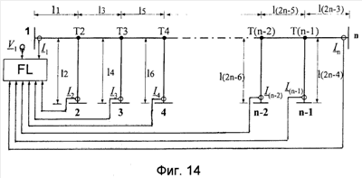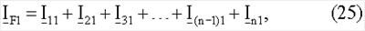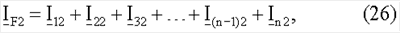 – значения тока, текущего от точки ответвления Т(п-1) до станции n на участке L(2n-3) линии для отрицательной последовательной составляющей i=2 или для инкрементной положительной последовательной составляющей i= 1; IFi – полный ток повреждения для отрицательной последовательной составляющей i=2 или для инкрементной положительной последовательной составляющей i= 1; Ini – ток, измеренный на последней станции n для отдельных симметричных составляющих (первый нижний индекс), а второй нижний индекс для отрицательной последовательной составляющей будет = 2 и для инкрементной положительной последовательной составляющей будет i= 1.