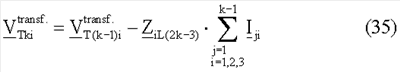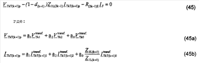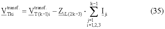 3.1.d’. Напряжения   для симметричных составляющих в koй точке ответвления Tk вычисляют из формулы (35) (действия выполняют в операциях 630d).