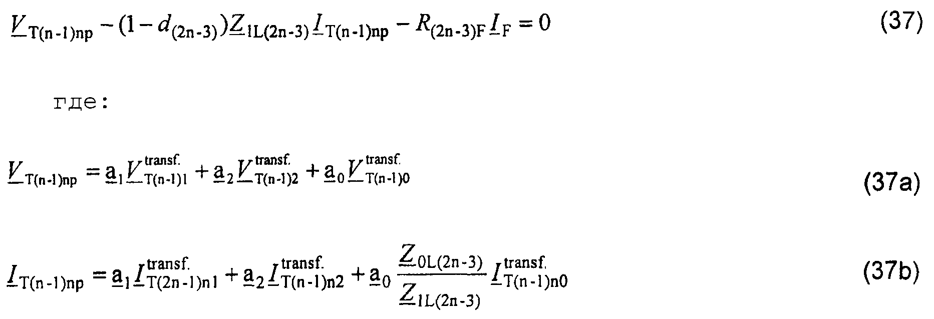 ZiL(2n-3)– импеданс участка L(2n-3) линии соответственно для положительной и отрицательной составляющих и также для нулевой последовательной составляющей.