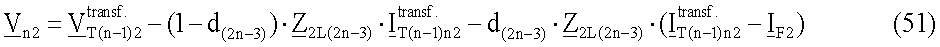 – напряжения, измеренные в конечной точке ответвления Т(n-1) для отрицательной последовательной составляющей i=2 или для инкрементной положительной последовательной составляющей i= 1; d(2n-3) – расстояние до повреждения от конца линии до точки повреждения; ZiL(2n-3) – импеданс участка L(2n-3) линии для отрицательной последовательной составляющей i=2 или для инкрементной положительной последовательной составляющей i= 1;