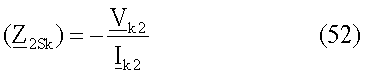 10′. Вычисляют импеданс Z2Sk kого эквивалентного источника в предположении, что повреждение произошло на участке L(2k-2) линии передачи с ответвлениями (действия выполняют в операциях 660c):
