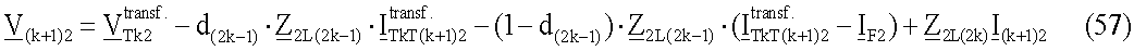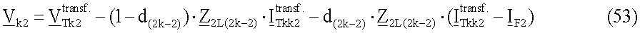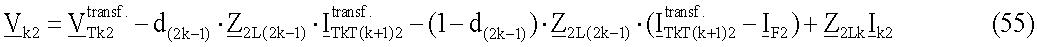 где – напряжения в koй точке ответвления для отрицательной последовательной составляющей i=2 или для инкрементной положительной последовательной составляющей i= 1; d(2k-2) – расстояние до повреждения от конца линии передачи с ответвлениями до точки повреждения Tk; ZiL(2k-2) – импеданс участка L(2k-2) линии для отрицательной последовательной составляющей i=2 или для инкрементной положительной последовательной составляющей i= l;