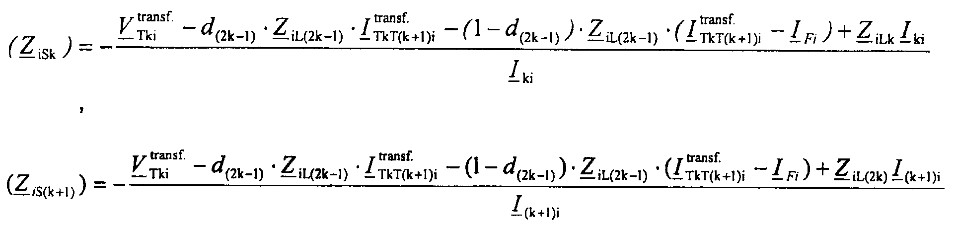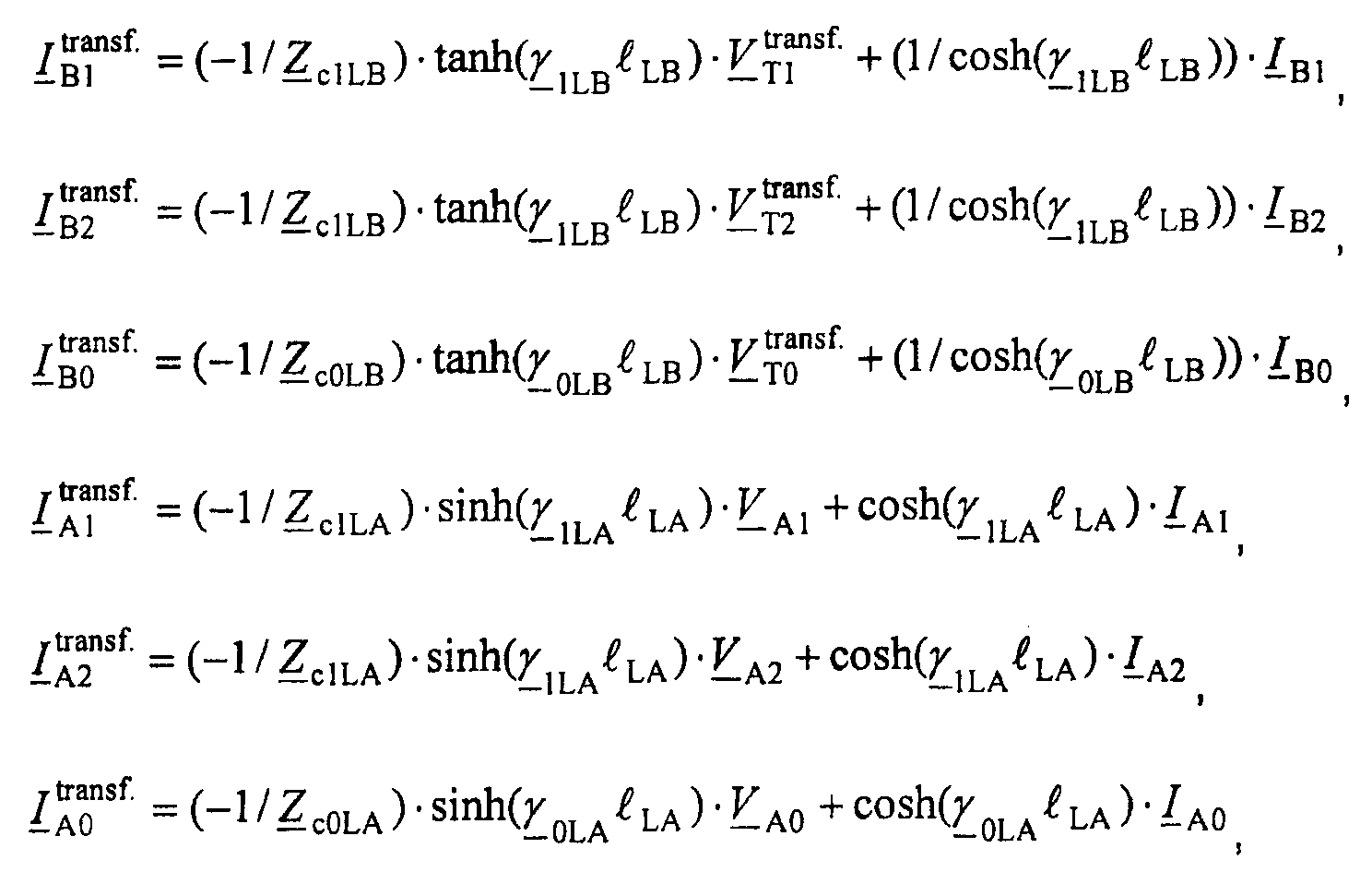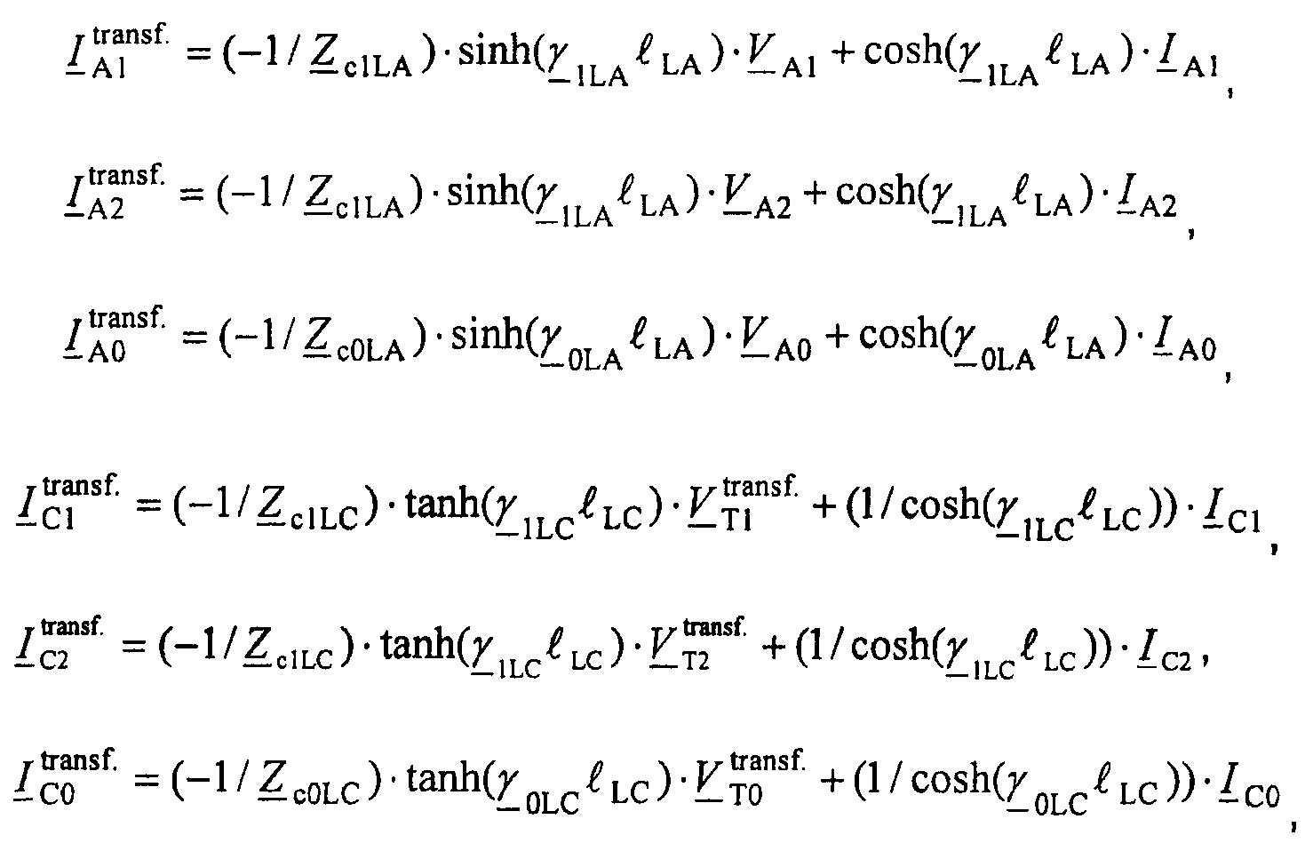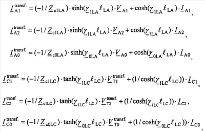 ZiLC – обозначает импеданс участка LC линии для отрицательной последовательной составляющей и/или импеданс участка LC линии для инкрементной положительной последовательной составляющей, где Z2LC=Z1LC и Z 1LC=Z1LC;