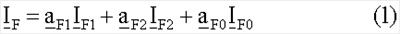I11, I12, I10 – токи, измеренные на станции 1 (первый нижний индекс) для отдельных симметричных составляющих, а второй нижний индекс для положительной последовательной составляющей будет равен 1, для отрицательной последовательной составляющей будет равен 2, и для нулевой последовательной составляющей будет равен 0;