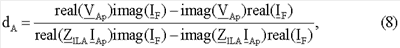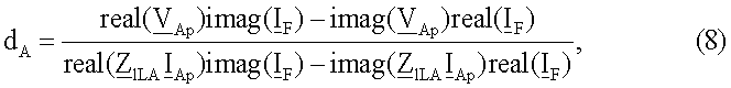 1 – угловая частота переменного тока для основной частоты; dA – обозначает расстояние от начала линии до точки повреждения, dB – обозначает расстояние от конца линии до точки повреждения; dC – обозначает расстояние от конца линии передачи с ответвлениями до точки повреждения.