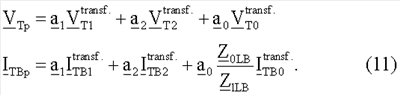 V11, V12, V10 – напряжение, измеренное на станции 1 (первый нижний индекс) для отдельных симметричных составляющих, а второй нижний индекс для положительной последовательной составляющей будет равен 1, для отрицательной последовательной составляющей будет равен 2, и для нулевой последовательной составляющей будет равен 0;